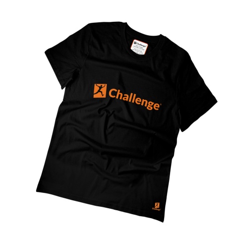 - Logo marki Challenge w dolnym lewym roku koszulki. Znakowanie wykonane dzięki metodzie DTF
