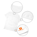 • Informacje o produkcie i wskazówki odnośnie pielęgnacji nadrukowane na wewnętrznej stronie koszulki, zamiast wszywanej metki