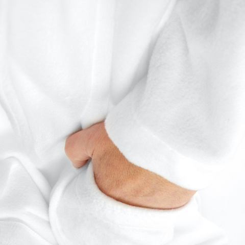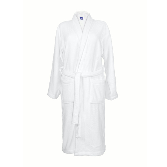 - Szlafrok kąpielowy biały wykonany jest z wysokiej jakości miękkiego materiału polar i posiada certyfikat Oeko-Tex Standard 100