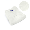 Szlafrok charakteryzuje się prostym krojem. Wykonany z wysokiej jakości materiału. Posiada dwie kieszenie i pasek do związania w talii. Doskonały fason, który zapewni komfort i relaks. Idealny do użytku w salonie SPA, gabinecie medycyny estetycznej, hotelu, pensjonacie oraz w domu. Materiał: 35% bawełna, 65% poliester Kolor: biały Rozmiar: S (unisex) Pranie: 40 stopni Nie należy go wybielać, chlorować, czyścić chemicznie i suszyć w suszarce automatycznej.